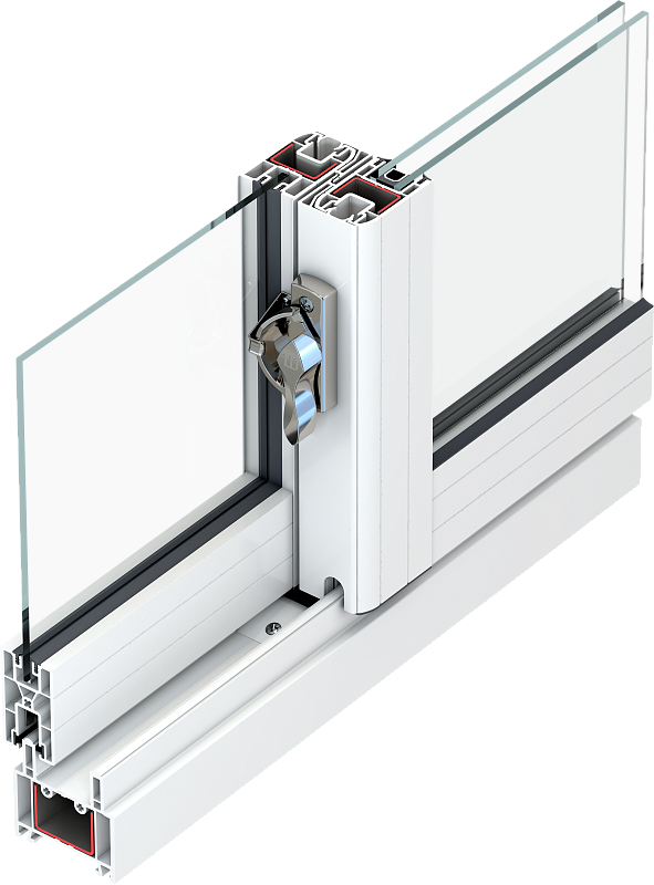 Устанавливается на внутреннюю часть поворотно – откидной створки, с помощью двух саморезов. Также на внутренней части рамы также устанавливается металлическая планка, в которую закрывается механизм.